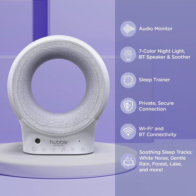 - SOOTHE YOUR BABY: Comfort your baby with the relaxing sound of nature and lullaby tracks with this speaker, and with the 7-color night light to help your little one settles down for bedtime with this Hubble Baby Monitor