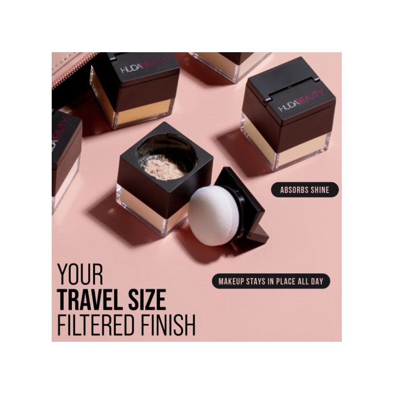The Huda Beauty Easy Bake & Baby Bake Loose Powders are inspired by Huda’s strong belief that the technique of baking is a key step to a flawless finish while ensuring long-lasting, melt-proof makeup. This extremely light and silky texture blends seamlessly into the skin leaving it matte with a hint of sheen, for a luminous finish that controls shine throughout the day. The powders work to subtly color correct and highlight different contours of the face, leaving a translucent veil of color on your skin. - Matte, luminous finish - Unique powder net to control product waste - Ultra-refined lightweight pigments