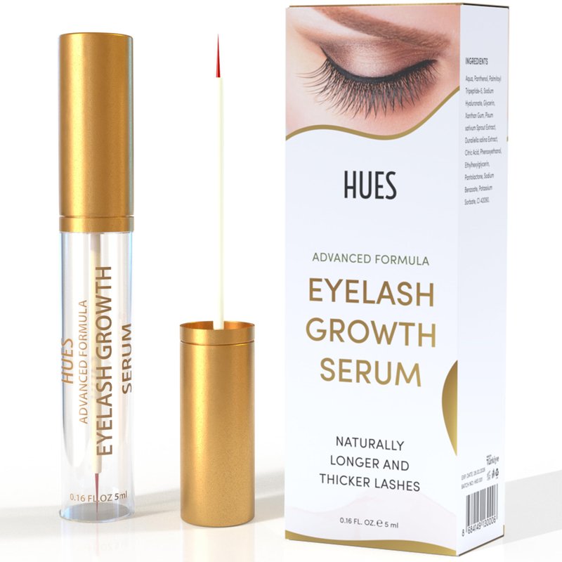 - RICH IN NUTRIENTS: Hues Eyelash Growth Serum works wonders on even the smallest lashes to increase growth and volume. contains no prostaglandin analogues, BPA or parabens to irritate eyes or skin. As an added bonus, it helps moisturize lashes and brows to reduce fragility and make them stronger. Say goodbye to bothersome fake lashes with fuller and more long natural lashes.