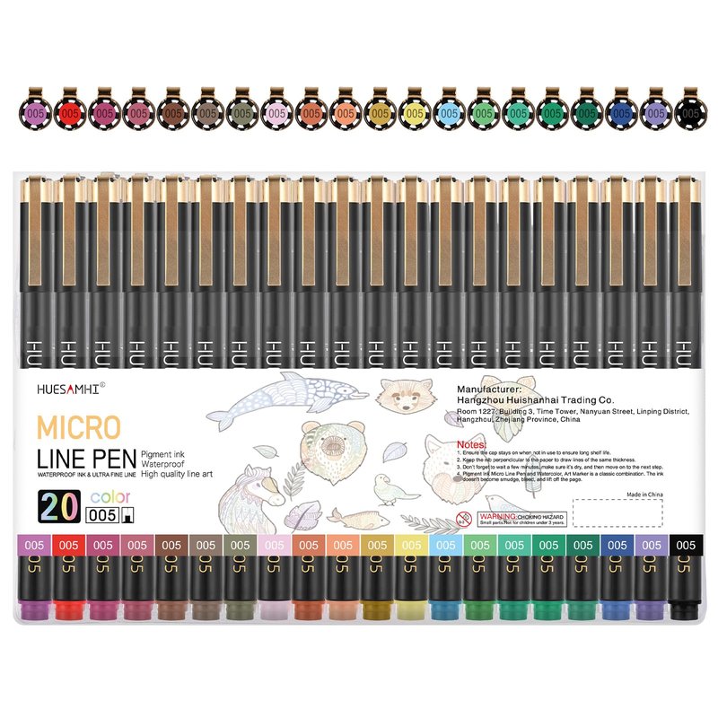 huesamhi 005 Micro Pen,20 Colors Waterproof Ink 0.20mm Fine Tip FineLiner Pens for Art Illustration,Sketching, Anime, Bullet journal,and Technical Drawing