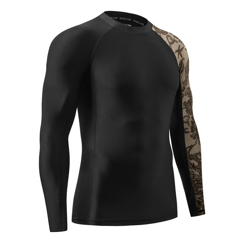 HUGE SPORTS Men's Splice UV Sun Protection UPF 50+ Skins Rash Guard Long Sleeves(Sea Forest, L)