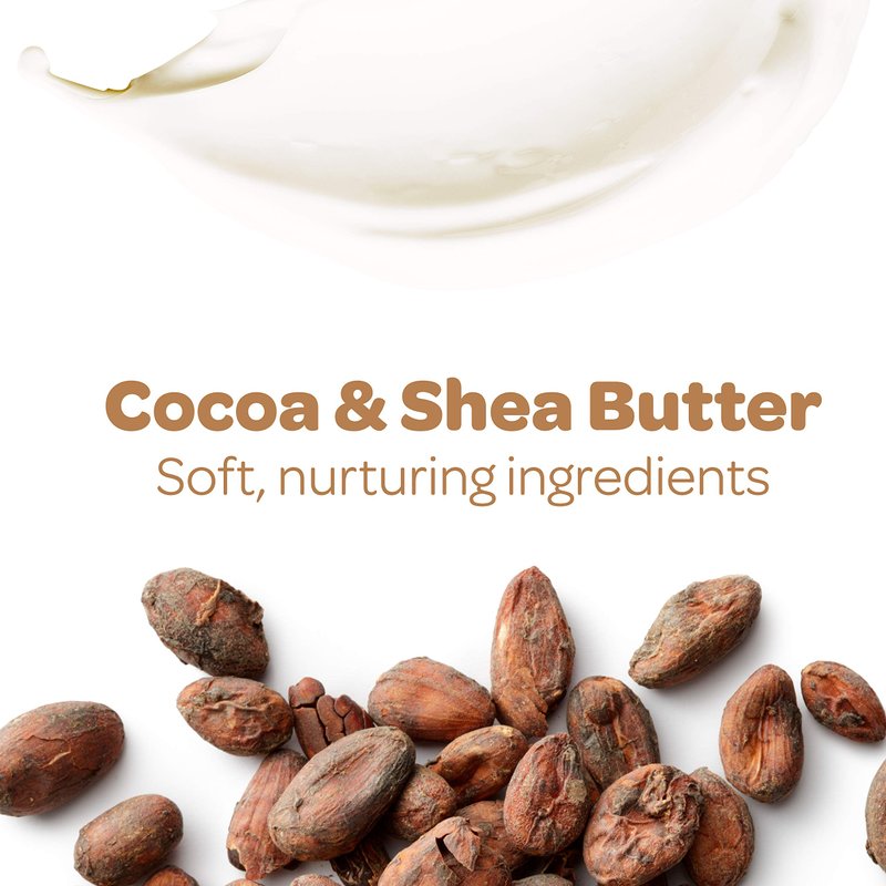 - Cocoa & Shea Butter Scent – Lightly scented with cocoa and shea butter for a soothing fragrance
