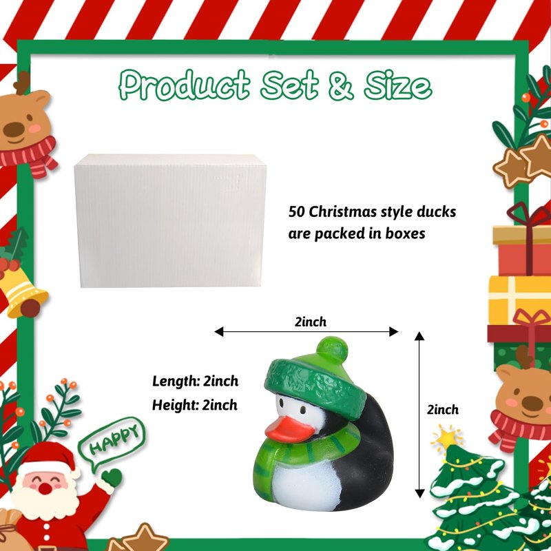 - 【Christmas Value Pack】:With 25 different styles and a number of 50 ducks, you can definitely meet your daily play and decoration needs. Christmas rubber ducks can be used for a variety of occasions, including stocking fillers, Christmas gifts, birthday gifts, party decorations, classroom rewards, baby bath toys, pool parties, car decorations, carnival prizes. Add more fun to your party.