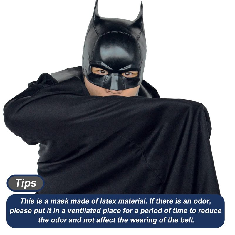 - Reminder: 1: This mask is folded and packaged, please spread it out when you receive it, latex material is stretchy, mask will return to its original shape, without affecting its appearance! 2: When you receive this man mask, it is very normal if there is an odor, because this is a latex mask, please put it in a ventilated place for a period of time, it will not affect the wearing!
