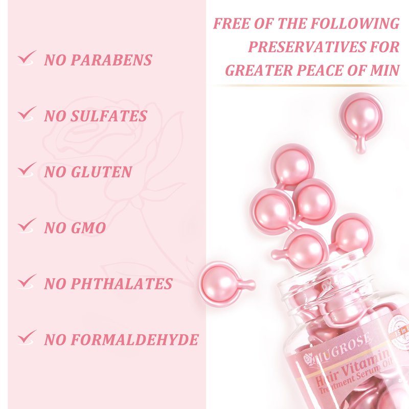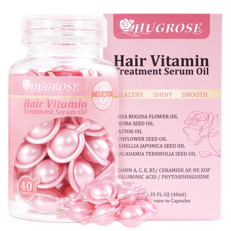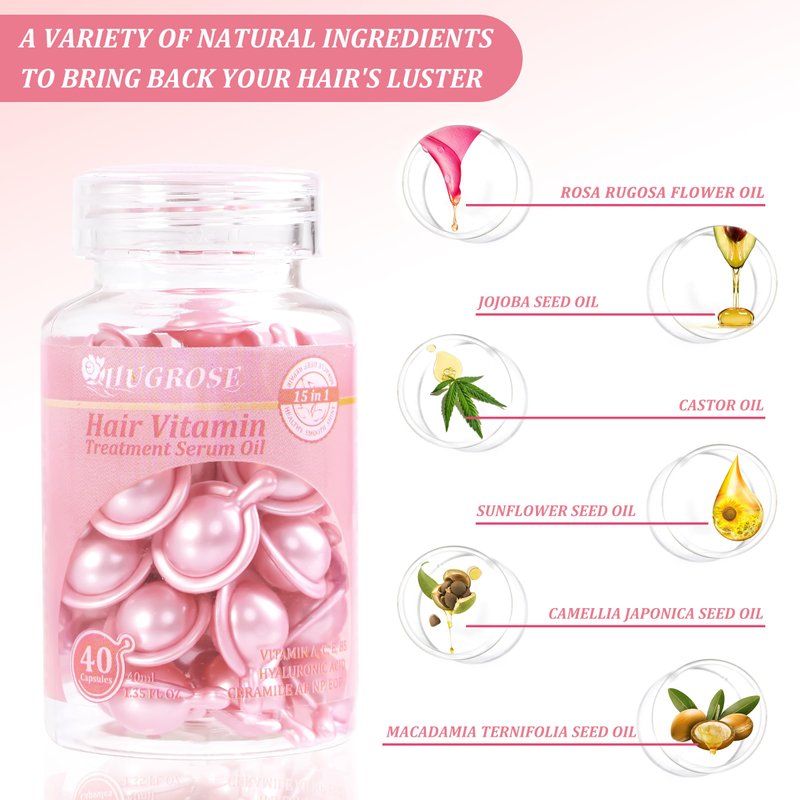 HUGROSE Hair Treatment Serum oil,Moisturizing & haircare Capsules,hair oil,Capsules with Rosa Rugosa Flower,Jojoba & Macadamia Seed-Leave-in Anti Frizz Conditioner with Vitamins A, C, E & B5(40pcs)