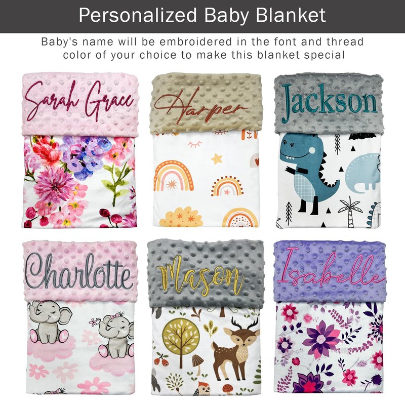 - Personalized Embroidered Blanket: Add a personal touch and customize this minky baby blanket with your baby’s name! Don’t worry, the name is embroidered with care in a matching color of your choice for a touch of cuteness and fun!