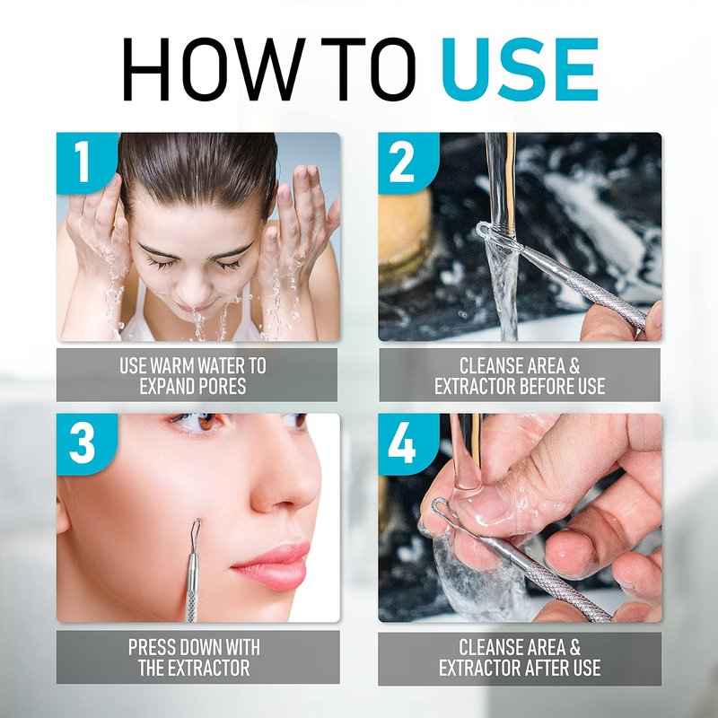 - 【How to Use】For the dual sided extractor, push from above which pushes the blackhead out. Don’t forget to wash your face with warm water to expand your pores and cleanse the extractor and tweezers. Make sure to check out our photos for a helpful visual! It’s as easy as child’s play - whether you’re a skincare specialist or beauty novice, this set will quickly become your go-to tool.