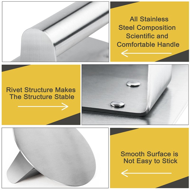 - Smooth & Flat Surface: A flat and smooth bottom of the smashed burger press can help you get a burger of uniform thickness. Smooth, brushed stainless steel feature not-stick, easy to clean and dishwasher safe