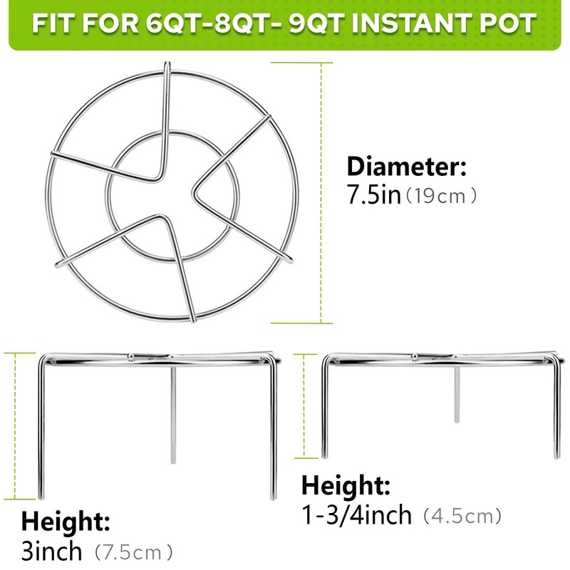 - Tall Steam Rack: 3" and 1-3/4" inches instant pot rack are high enough to keep above the water. It is a fairly high quality steel and the joints are all spot welded. Triangle design add more stability, easy to store on kitchen hooks.