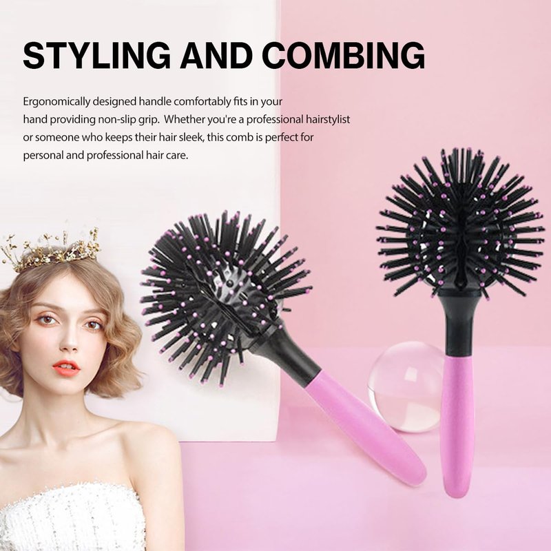Hulyfw Hair Brush, 3D Round Curl Hair Brushes, Spherical Shape Styling Detangling Hairbrush for Women, Salon Round Hair Curling Curler for Curly/Long/Wet/Dry Hair