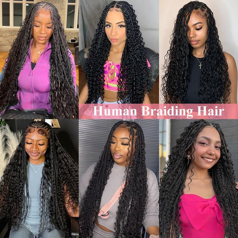 - Suitable for Various Hairstyles:Deep wave human braiding hair can meet your different requirements for hairstyles.You can DIY different braids according to your preference,such as knotless braids,boho braids,locs,twists,shawl hair,ponytail,etc.You can also directly braid the hair bulk on your natural hair to add length and volume to your natural hair.