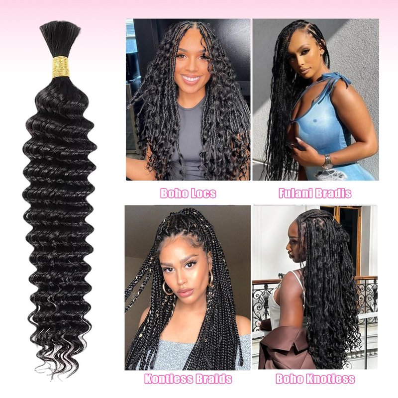 - 【Human Braiding Hair Material】:Deep Wave Human Braiding Hair For Boho Braid No Weft Made Of 100% Unprocessed Brazilian Virgin Human Hair. Tangle & Shedding Free; No Smell, Soft & Elastic. Offering A Natural Look And Feel, Matching Your Own Hair for A Seamless Blend.