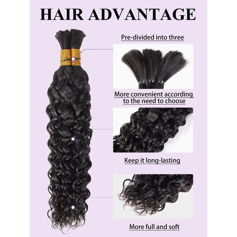 - Long Duration: Due to its high-quality real hair composition, human braiding hair wet and wavy is exceptionally durable, maintaining its aesthetic appeal for extended periods. This ensures you can confidently wear these hairstyles without worrying about premature damage or shedding.