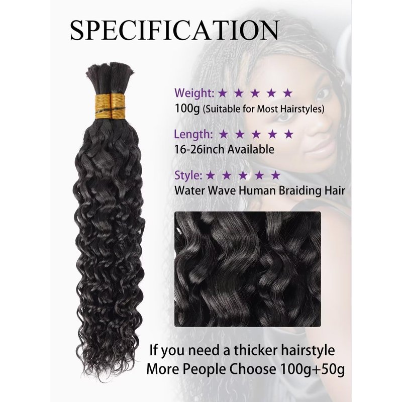 - Correct Length and Color: Human hair for braiding with a wide range of styles (Deep wave human braiding hair and water wave human braiding hair), lengths(16-54inch); If you find some brown hairs in your hair, don't worry because we use virgin hair that is unprocessed.