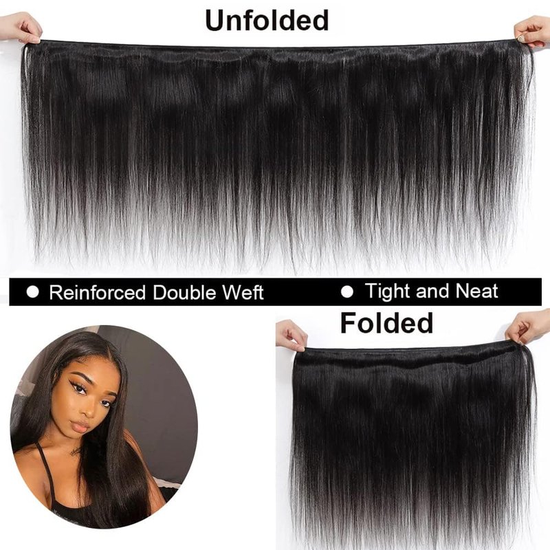 - 【Straight Hair Bundles Quality】: 12A Grade Brazilian Straight Bundles Human Hair,Double Strong Machine Weft,Thick Healthy Ends,No Shedding,No Bifurcation,No Tangle,No Spilt,Soft and Silk,Tight and Neat,Bright Luster, Elastic.