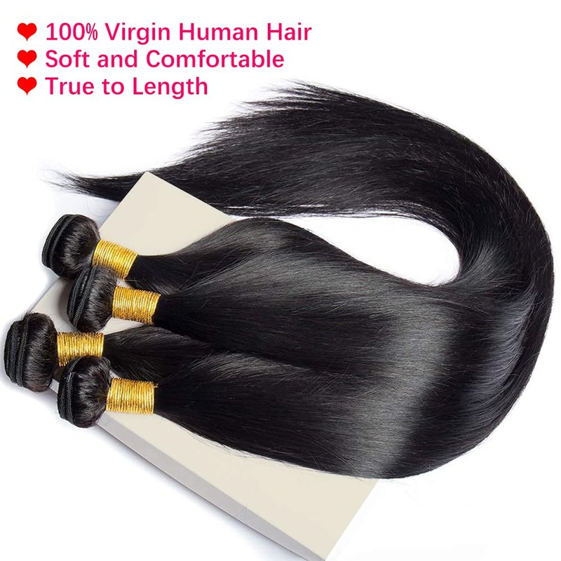- 【Straight Bundles Material】:100% Unprocessed Brazilian Virgin Remy Human Hair Bundles,Cut from Young Girls,Clean and healthy.