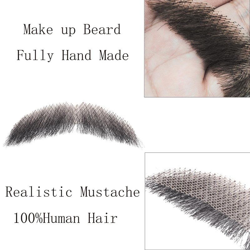 - Realistic Beard: fake facial mustche are made of 10A 100% Human Hair, fake facial costume beard feels just like the real. We use soft, natural-looking, human hair, making it easy to blend in with your own facial hair for a seamless appearance.