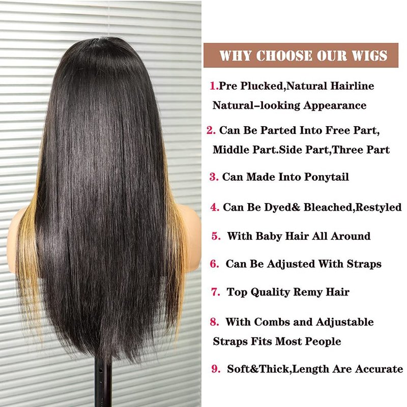 - 1. Hair Material: 100% Unprocessed Brazilian 9A Straight Human Hair Lace Front Wigs For Black Women, Superior Quality, Smooth and Healthy.