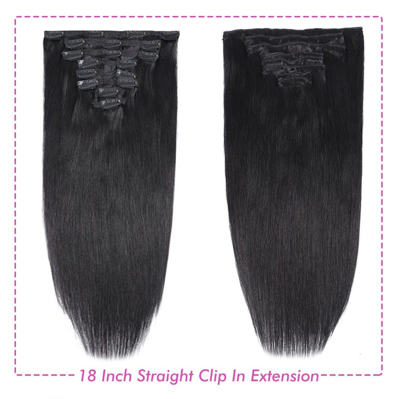Human Hair Straight Clip In Hair Extensions for Black Women 18 Inches Clip In 10A Grade Unprocessed Full Head Soft Silky Real Human Hair Natural Color Clip Ins 135g/set