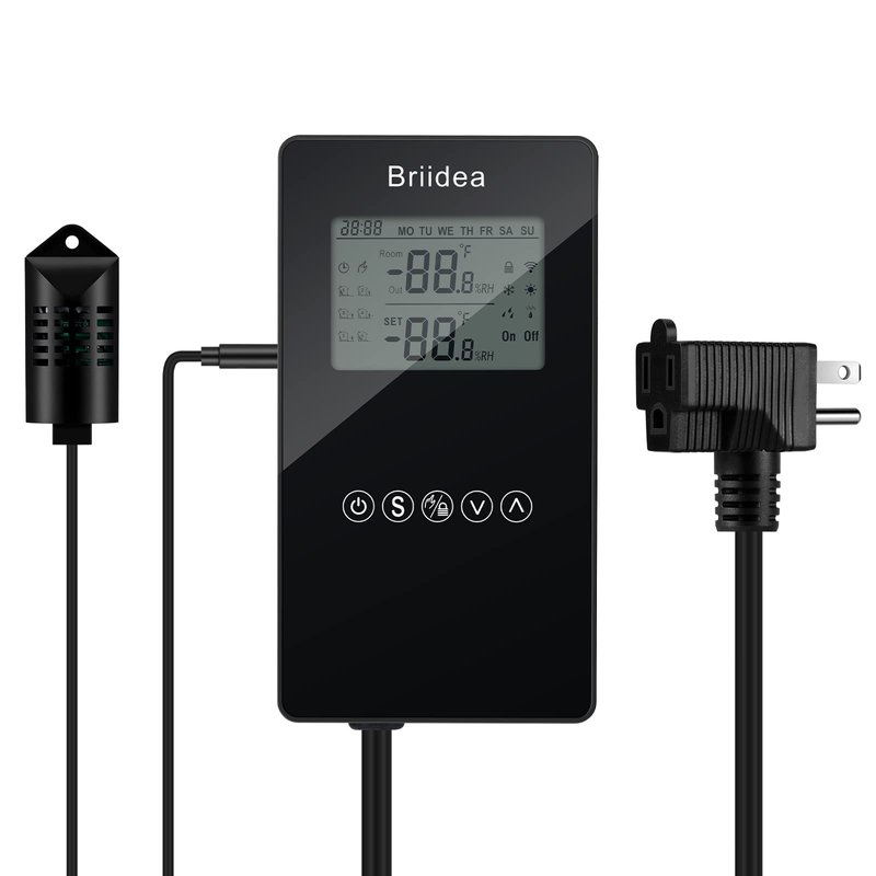 Humidity Controller, Briidea Pre-Wired Humidistat Humidifier Dehumidifier with LCD Display High Accuracy Humidity Sensor, Ideal for Greenhouse Mushroom Grow Tent