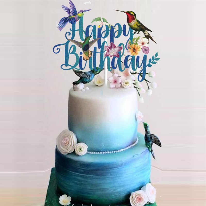 Hummingbird Happy Birthday Cake Topper t Mother's Day Spring Flying Nature Lady Party Supplies For Women Girl Mother Cake Decor