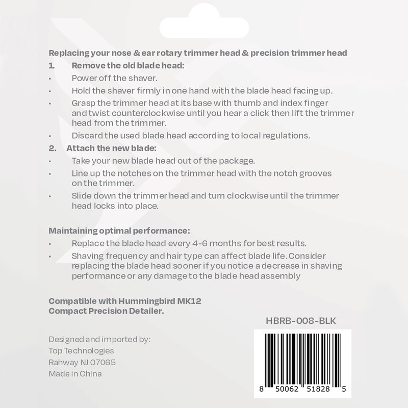 - Authentic Hummingbird MK12 Ear & Nose Hair Trimmer replacement heads. Replace the blade heads every 3-6 months depending on use.