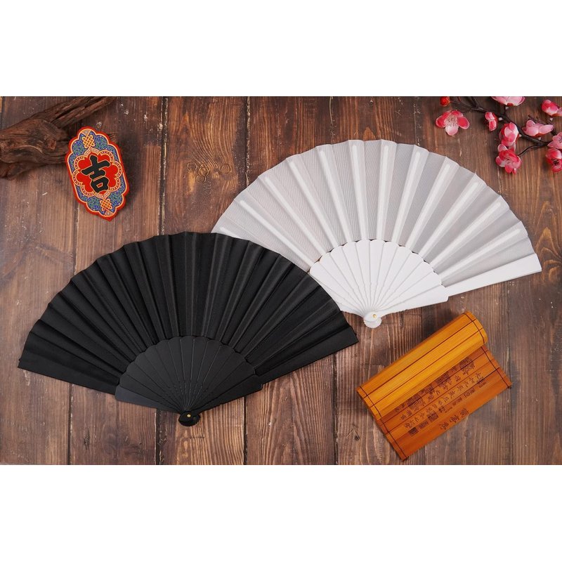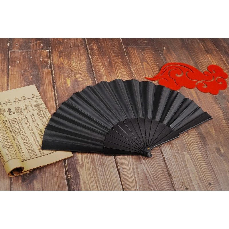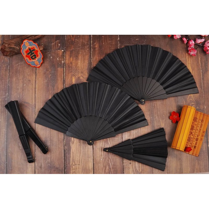HUNANBANG 1 Dozen 12 Pieces Folding Hand Fans Church Wedding Gift, Party Favors, DIY Decoration Gift Size9 Wholesale 12pack (Black)