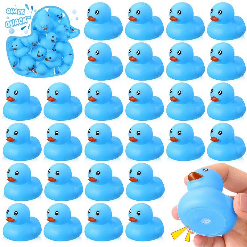 Hungdao 24 Pieces 2 Inch Mini Rubber Duck Bath Toys Squeaky Rubber Ducks Float Bathtub Ducks for Baby Shower Birthday Classroom Carnival Prizes Car Decor Supplies Summer Pool Party Favors(Blue)