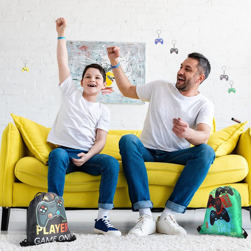 These video game goodie bags are made of quality polyester, reliable for long time service, the game on rubber bracelet is made of quality silicone, comfortable to wear, and the game controller keychain is made of soft rubber, bringing you a pleasant experience.