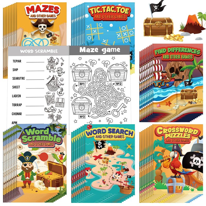 Hungdao 48 Pcs Pirate Mini Activity Books Bulk for Boys Pirate Party Favors Games Challenging Activities Include Mazes, Word Search, Find Difference and More for Girls Pirate Party Gift Bag Stuffers