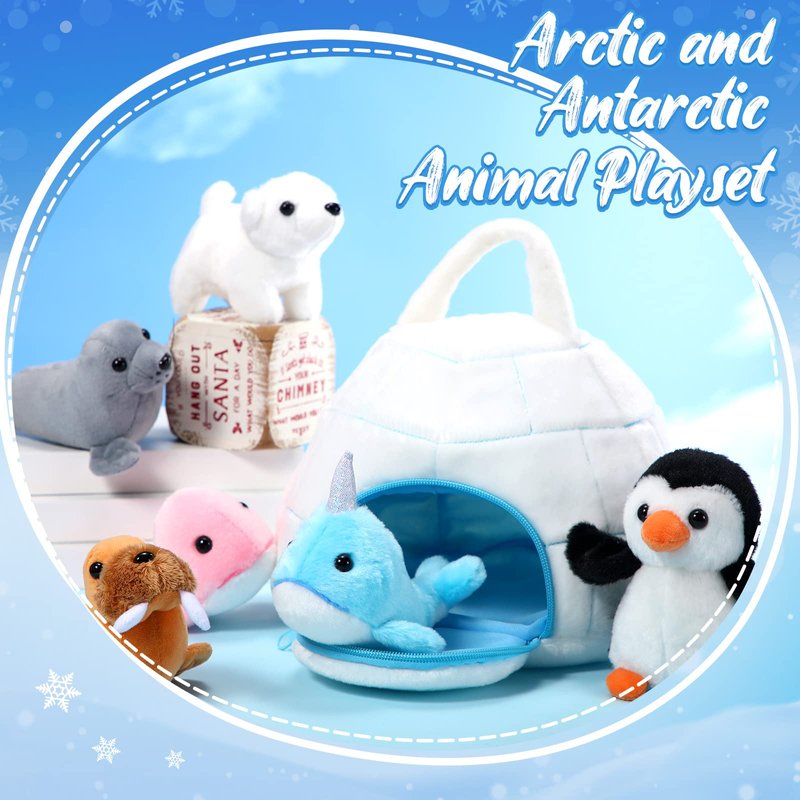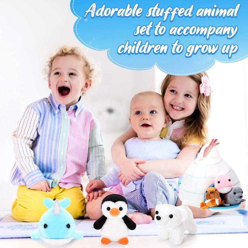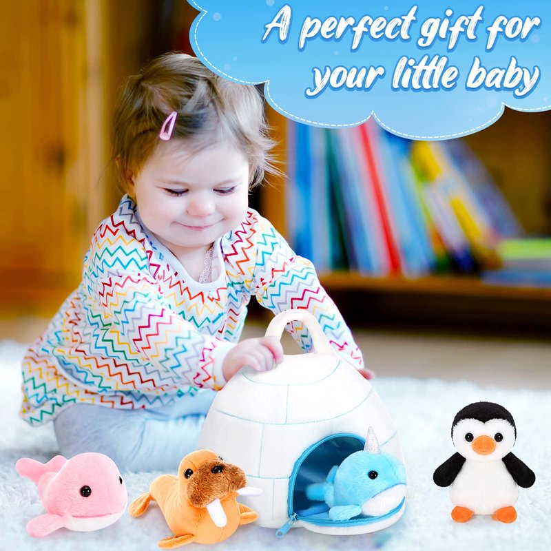 - Beautiful Polar Plush Toy Set: you will get a 9.8 inch igloo bag and 6 ocean stuffed animal toys of 5.12 inch, including walrus, whale, penguin, narwhal, polar bear and seal, which are good for your little one to play alone or share with others