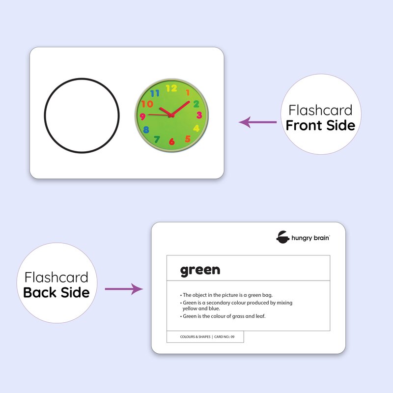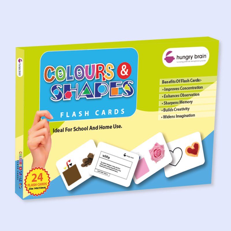 hungry brain Flash Cards for Toddlers, 24 Colours & Shapes Flashcards, Double-Sided, Montessori, Educational, Kindergarten - Preschool Learning Activities, Gifts for Kids, 1, 2, 3, 4 Years Babies