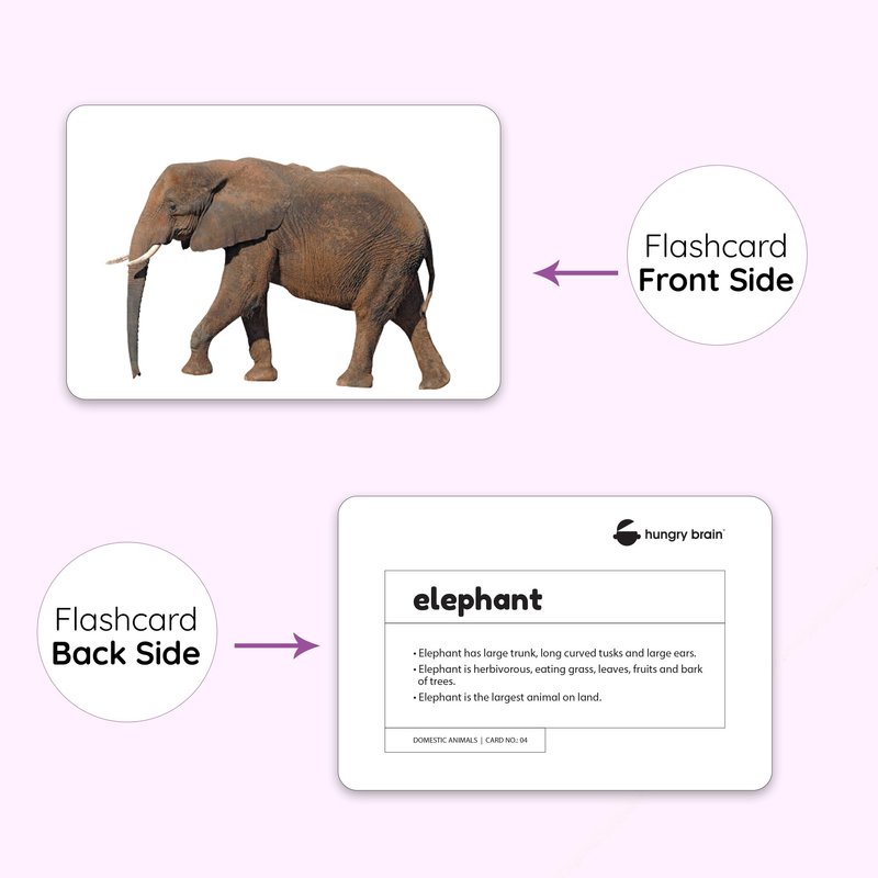 hungry brain Flash Cards for Toddlers, 24 Domestic Animals Flashcards, Double-Sided, Montessori, Educational, Kindergarten - Preschool Learning Activities, Gifts for Kids, 1, 2, 3, 4 Years Babies