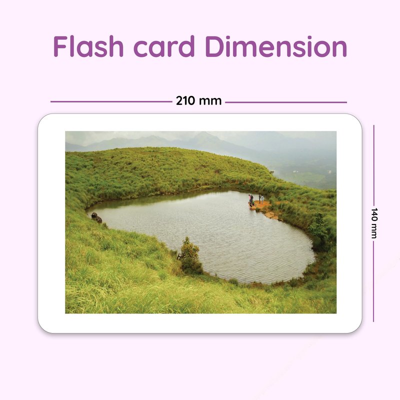 Total no of cards : 24 Material : Food Grade Paper Flash Cards Size : A5 (21 cm x 14 cm) Product Dimension : Length 21.5 cm Width : 14.5 cm, Height - 1 cm Flash cards are meant to be shown at a flashing speed, hence the name : flash cards. Hungry Brain cards do not have rings for flash cards as when in ring, it restricts the speed of showing the cards at 1 second/ card. Ideally 24 cards of Fruits flashcards are to be shown in less than half a minute. To develop a good photographic memory for life, show each set of flash cards 3 times a day for a week. Appreciate the baby/ toddler/ child after every session of the flashcards. This appreciation will develop a strong bond for learning in life. After a month, say 3-5 words from 1st point of description from the back side of the card for a week. Next month, say 3-5 words from 2nd point of description from the back side of the card for a week. Next month, say 3-5 words from 3rd point of description from the back side of the card for a week. After completing 3 points, write the name of the action in the front and show or stick the cards on the wall for a week. This will enable the child to associate the word with the image thus building early reading skills for babies, toddlers and young children. These set of cards will be treasure for your child even after some months when they will be able to read the description by their own. Activity for toddler: Act a particular action and tell the baby to guess what kind of animal is this. You can also say a name and the child with do the action for the animal. children love this kind of activity with the learning from the flashcards. This will develop communication skills, critical thinking skills, verbal concepts, enhance conversations and strengthen reasoning ability at a young age. FACT: Younger the baby, better the learning.