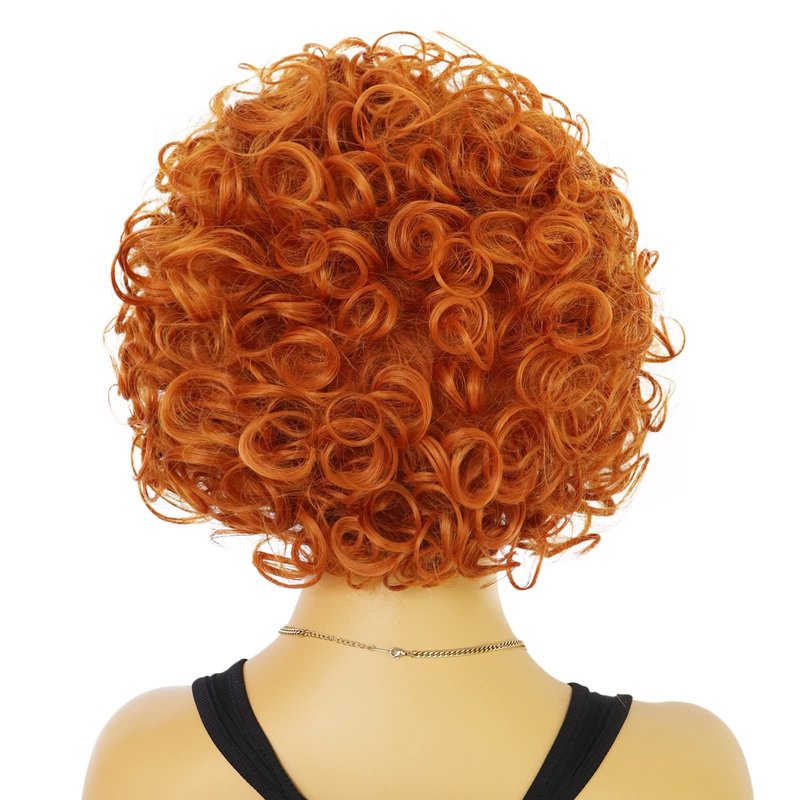 HUNIGIR Orange Curly Wig Women Short Afro Wig 70s Orange Wig for Unisex Adult Heat Resistant Synthetic Cosplay Halloween Costume Wig (Orange)