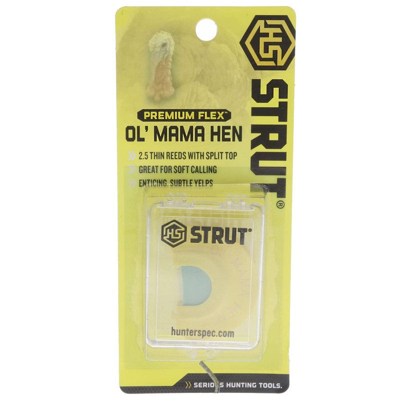 - REALISTIC TURKEY SOUNDS - The Hunters Specialties H.S. Strut Ol' Mama Hen turkey diaphragm has two and a half ultra-thin reeds to easily produce the most realistic sounds of a raspy hen for fooling those wise ol' gobblers