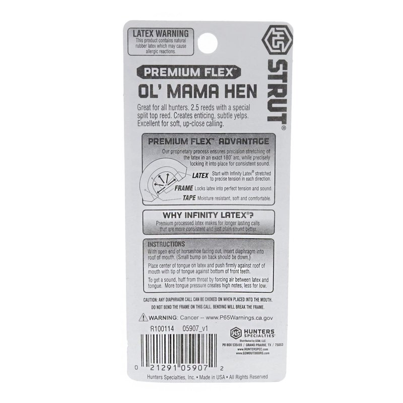 - EASY TO MASTER - Whether you're getting started as a turkey hunter or you've got years of experience under your belt, you will appreciate the easy-to-produce natural sound that Strut Hunters Specialties Ol Mama Hen Diaphragm Mouth Turkey Call produces