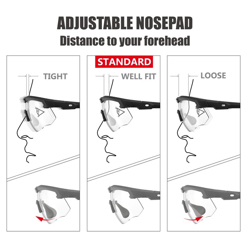 Optimizing eye comfort and proper fitting are pivotal to wear glasses for all day. Poor optical-quality lenses cause fuzzy vision, visual distortion, eye strains, headache or dizziness or personal hazard. Our lenses meet ANSI Z87.1+ optical requirements, have superior optical clarity to see more clearly and spot moving objects more quickly. The soft and non-slip nose pads are adjustable for a custom and secure fit. When you are engaged in activities, they sit in place and don't slide down or move out. You will be more focused and this helps you to take your performance to next level.