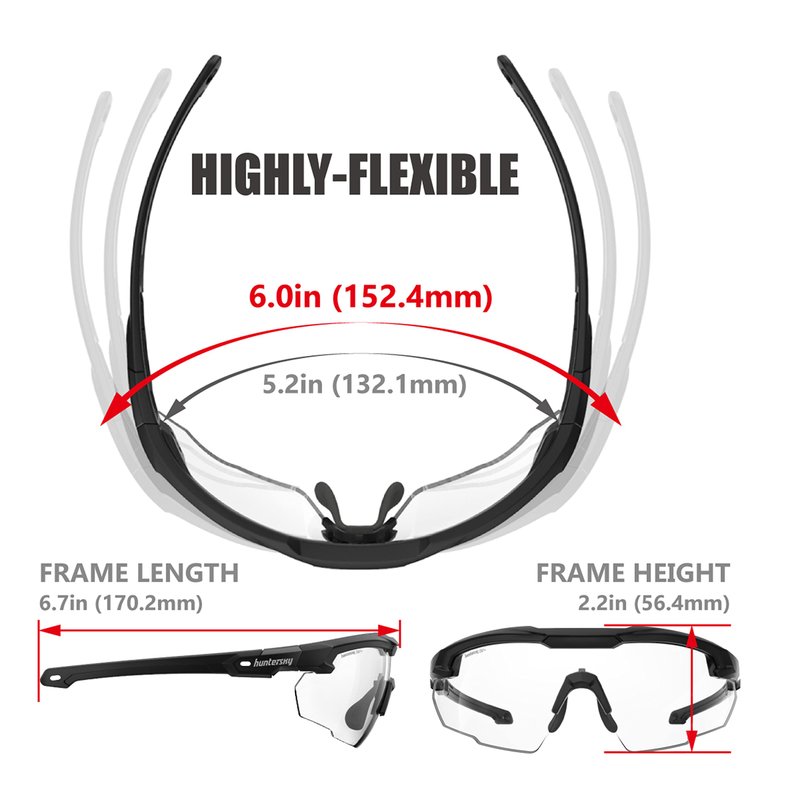 - 【Customized and Secure Fit】The frame is lightweight, flexible and durable. The soft and non-slip nose pads are adjustable to fit your nose shape. They secure the glasses in place without sliding down. It provides ergonomic comfort for all day wear and take your performance to next level.