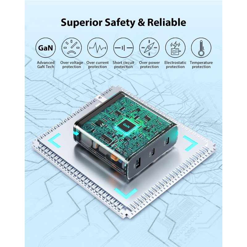 - Travel & Lowcarbon Friendly:The latest gallium nitride technology enables 100w USB C Charger Block to be very small in size(2.5*2.6*1.1 inches), convenient for travel, and efficient energy efficiency conversion, which can reduce carbon emissions and protect our environment.