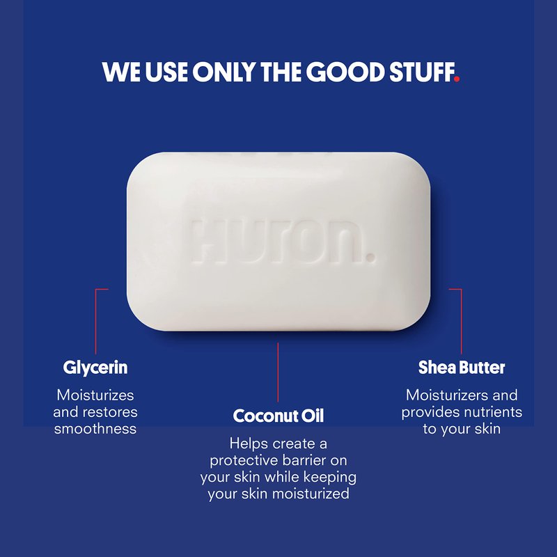 Huron creates the best bar soap for men by using a triple milled palm-kernel, coconut oil, and glycerin formula that creates a dense bar soap with a rich lather. The moisturizing bar soap contains vitamin-rich shea butter and coconut oil that keeps your skin smooth and soft, while the natural witch hazel provides you with all-day odor control.