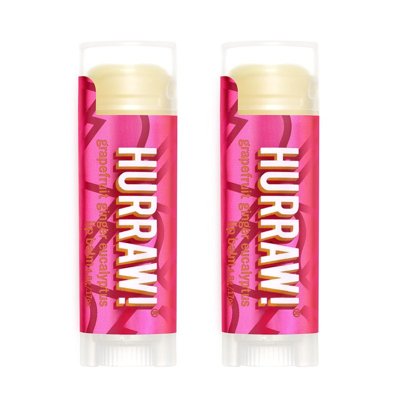 - TWO 4.8g/.17oz Oval Tubes of Grapefruit Ginger Eucalyptus (Kapha) Lip Balm packaged in a white HURRAW! branded pillow box. An herbal infusion of tulsi. Invigorating and zesty grapefruit subtly melds with stimulating eucalyptus; fresh Malagasy ginger gives warmth. Energizing. Made with certified organic, vegan, and raw ingredients. Hurraw! Lip Balms are certified 100% all natural origin, cruelty and gluten free. Non-GMO. Bee, Shea, Soy and Palm Free.
