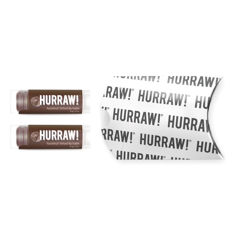 - TWO 4.8g/.17oz Oval Tubes of Hazelnut Tinted Lip Balm packaged in a white HURRAW! branded pillow box. Cacao & bhringraj come together for a SHEER SUNSET BROWN TINT. Plant-based. Mild, yet delicious, hazel-nutty treat! Made with certified organic, vegan, and raw ingredients. Hurraw! Lip Balms are certified 100% all natural origin, cruelty and gluten free. Non-GMO. Bee Free, Shea Free, Soy Free and Palm Free.