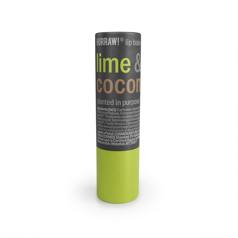 - ONE 4.8g/.17oz Round Cardboard Tube of HURRAW! Lime and Coconut Lip Balm packaged in a white HURRAW! branded pillow box: Now in a PLASTIC-FREE cardboard applicator format. Yes …. We can save our EARTH! Made with certified organic, vegan, and raw ingredients. Hurraw! Lip Balms are certified 100% all natural origin, cruelty and gluten free. Non-GMO. Bee, Shea, Soy and Palm Free.