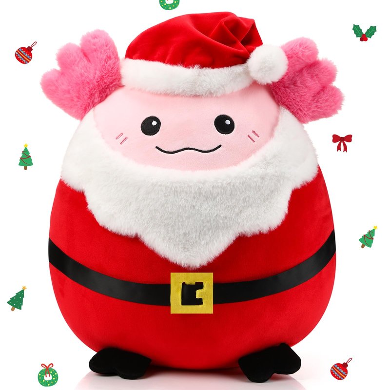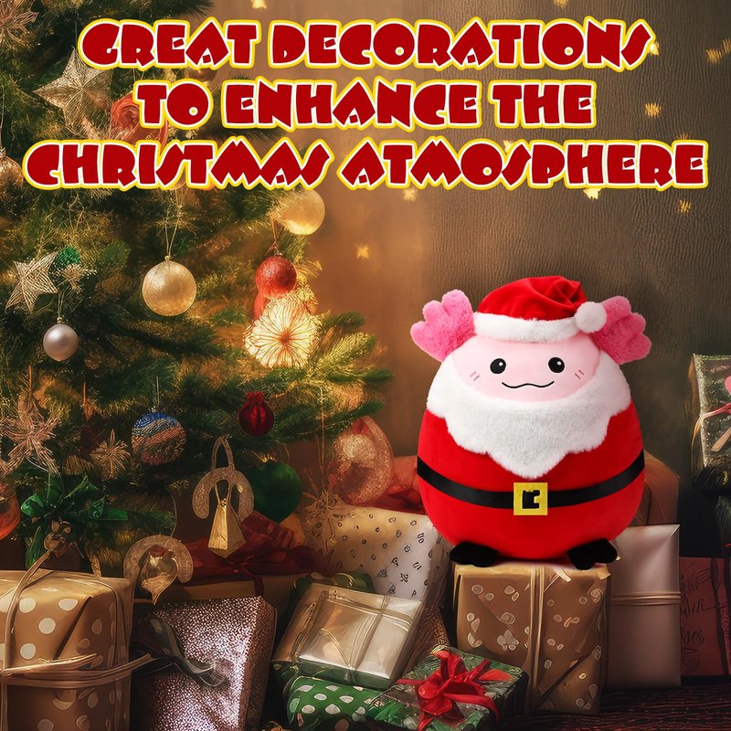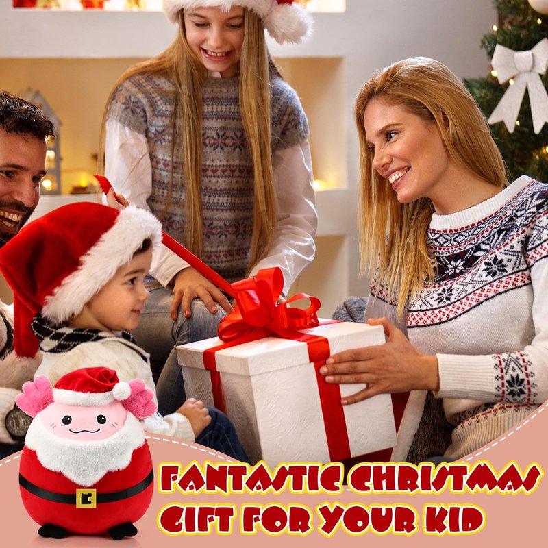 - Adorable Design: built with a cute Santa Claus design, the Christmas axolotl Santa plush toy is designed with bright round eyes, charming smile, chubby appearance and bright colors, which can easily attract attention and bring people a happy mood; Enhance your home decor, brighten your little guy's room or simply snuggle into it during your siesta