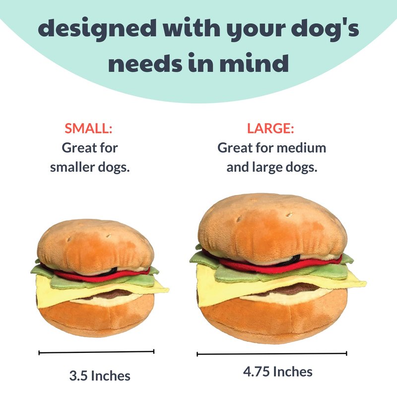 Huxley & Kent for Dogs | Hamburger (Small) | 4th of July Power Plush Dog Toy with Squeaker | Funny Dog Toy | Cute Dog Toy | H&K Squeaky Dog Toy