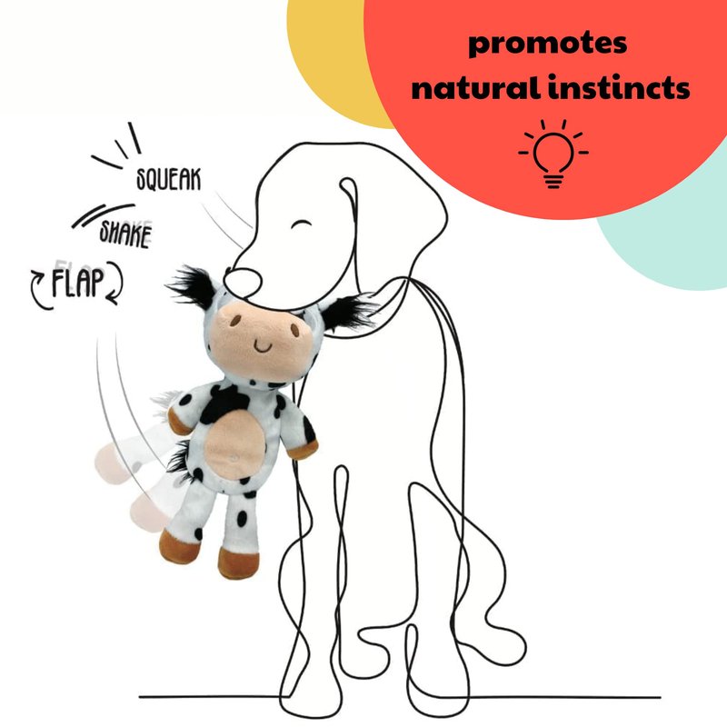 - Promotes Natural Instincts: The "slapping” of this toy when the dog shakes it by its head promotes natural prey drive instincts for dogs. A TPR ball in the head of the toy acts as a weight for the dog to hold onto as it shakes the stuff-less toy, leading to a “slapping” sound and excitement. Available in 8 different animal styles: Chicken, Cow, Llama, Panda, Elephant, Pig, Bunny, and Koala.