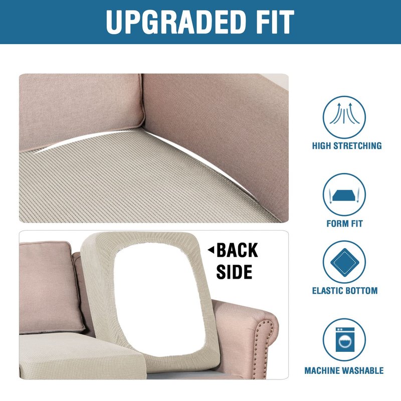 - GREAT FIT: Slipcover Set of 3. This innovated cushion slipcover is crafted from durable and soft high stretch knitted jacquard fabric. Sofa Seat Cover(fit total sitting area between 58.8-88.5 inches). Feature one-size-fits-most, kindly measure before ordering. Suitable for both T cushion and Box cushion styles
