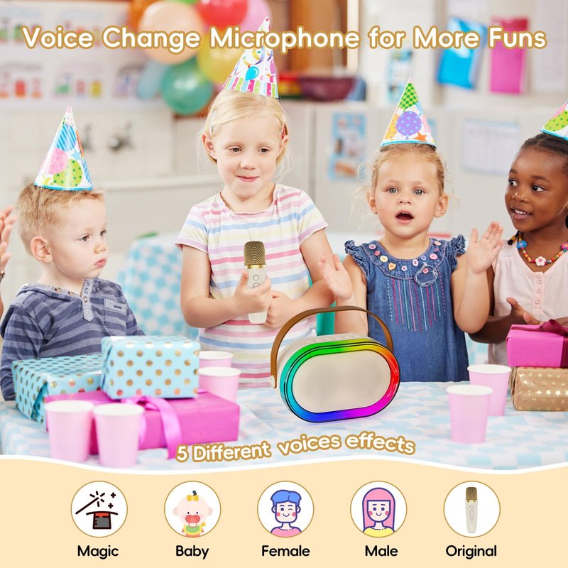 - 【Fantastic Gifts for Kids Children】This kids karaoke machine is an ideal gift for parties, birthdays gift for girls boys ages 4,5,6,7,8,9,10+ years old! With its attractive appearance and elegant packaging, this product is suitable for a variety of festival gifts, including Easter, Christmas, Children's Day, Valentine's Day, Halloween, Thanksgiving,New Year and so on.