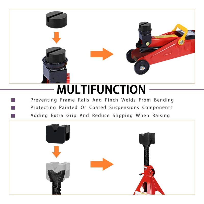 - 【SAFE & HEAVY DUTY】 Made of durable rubber material, Maximum Load Bearing is 3 Tons.Jack stand rubber pad adapter is designed to be sturdy enough to support your car while soft enough to resist pressure for your jack stand.